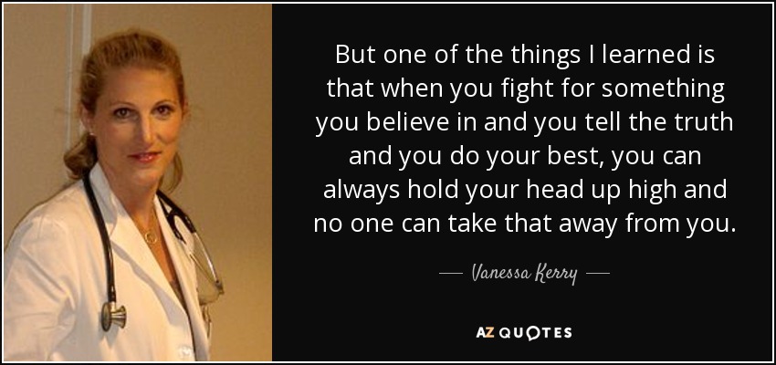 But one of the things I learned is that when you fight for something you believe in and you tell the truth and you do your best, you can always hold your head up high and no one can take that away from you.