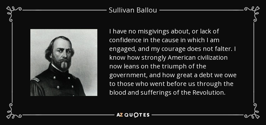 I have no misgivings about, or lack of confidence in the cause in which I am engaged, and my courage does not falter. I know how strongly American civilization now leans on the triumph of the government, and how great a debt we owe to those who went before us through the blood and sufferings of the Revolution.