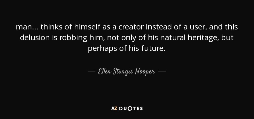man ... thinks of himself as a creator instead of a user, and this delusion is robbing him, not only of his natural heritage, but perhaps of his future.