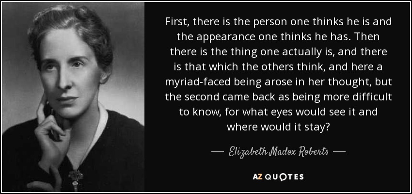 First, there is the person one thinks he is and the appearance one thinks he has. Then there is the thing one actually is, and there is that which the others think, and here a myriad-faced being arose in her thought, but the second came back as being more difficult to know, for what eyes would see it and where would it stay?