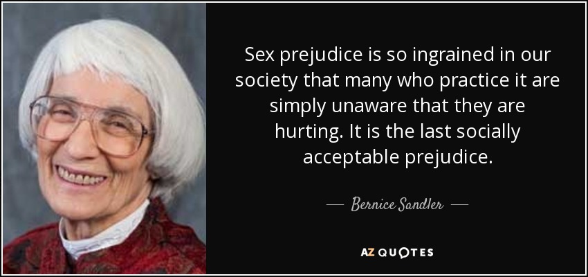 Sex prejudice is so ingrained in our society that many who practice it are simply unaware that they are hurting. It is the last socially acceptable prejudice.