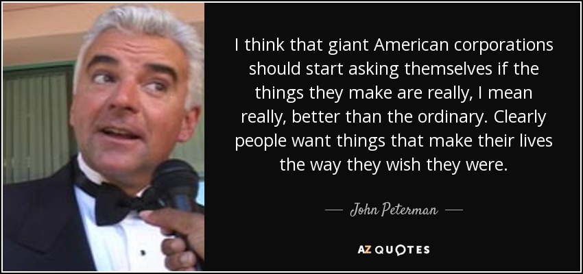I think that giant American corporations should start asking themselves if the things they make are really, I mean really, better than the ordinary. Clearly people want things that make their lives the way they wish they were.