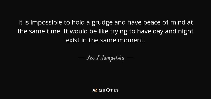 It is impossible to hold a grudge and have peace of mind at the same time. It would be like trying to have day and night exist in the same moment.