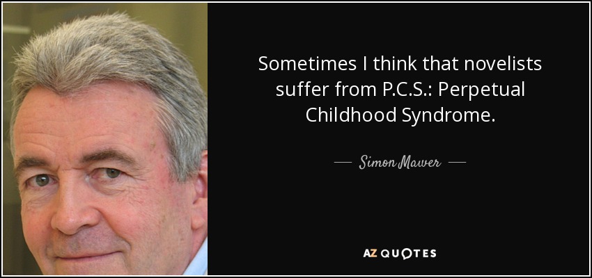 Sometimes I think that novelists suffer from P.C.S.: Perpetual Childhood Syndrome.
