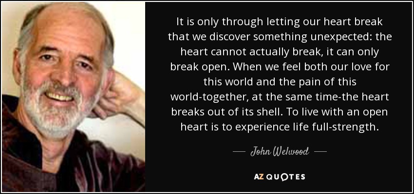 It is only through letting our heart break that we discover something unexpected: the heart cannot actually break, it can only break open. When we feel both our love for this world and the pain of this world-together, at the same time-the heart breaks out of its shell. To live with an open heart is to experience life full-strength.
