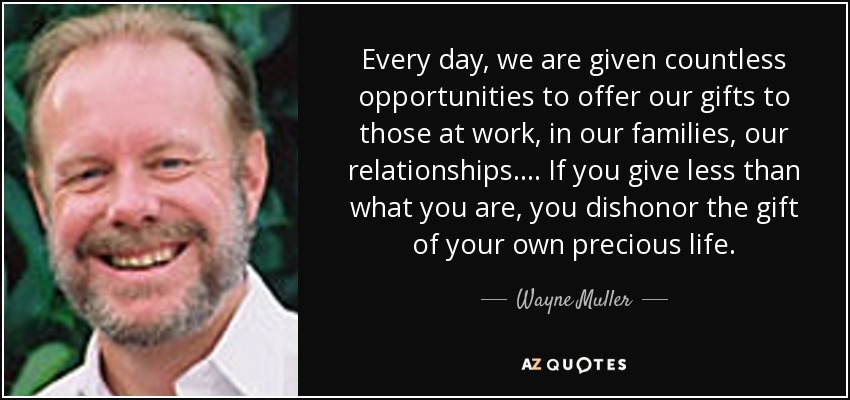 Every day, we are given countless opportunities to offer our gifts to those at work, in our families, our relationships.... If you give less than what you are, you dishonor the gift of your own precious life.