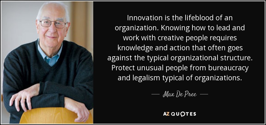 Innovation is the lifeblood of an organization. Knowing how to lead and work with creative people requires knowledge and action that often goes against the typical organizational structure. Protect unusual people from bureaucracy and legalism typical of organizations.
