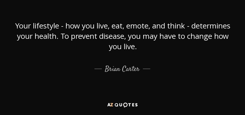 Your lifestyle - how you live, eat, emote, and think - determines your health. To prevent disease, you may have to change how you live.