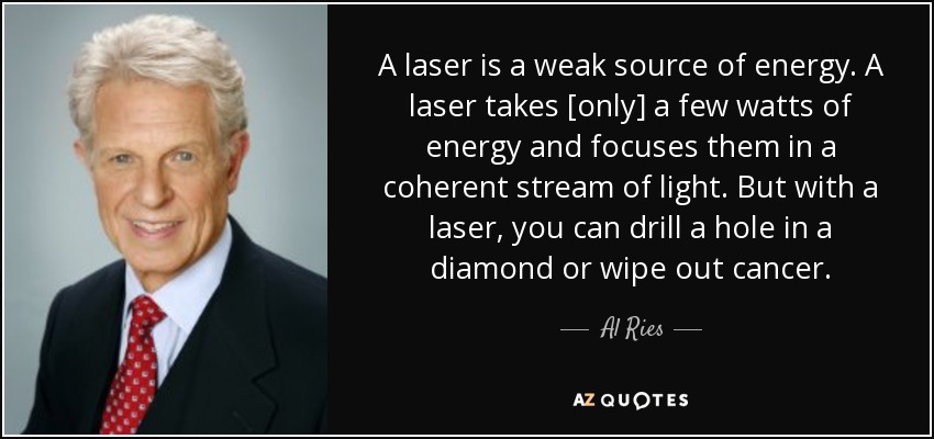 A laser is a weak source of energy. A laser takes [only] a few watts of energy and focuses them in a coherent stream of light. But with a laser, you can drill a hole in a diamond or wipe out cancer.