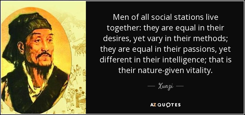 Men of all social stations live together: they are equal in their desires, yet vary in their methods; they are equal in their passions, yet different in their intelligence; that is their nature-given vitality.