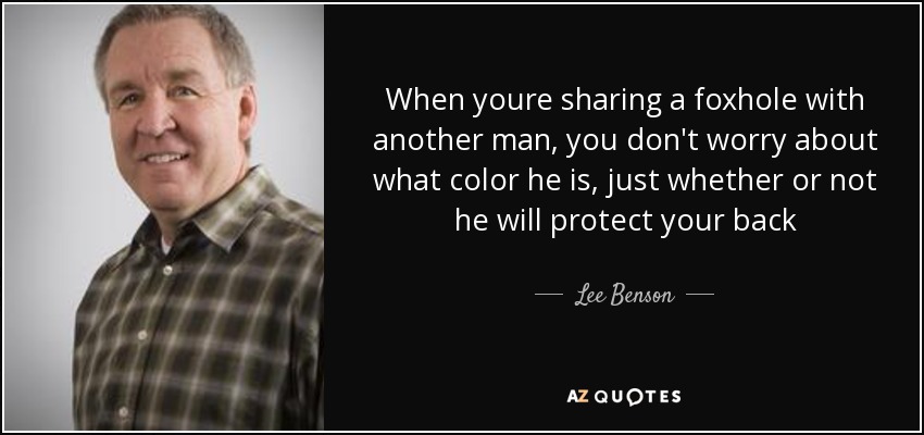 When youre sharing a foxhole with another man, you don't worry about what color he is, just whether or not he will protect your back