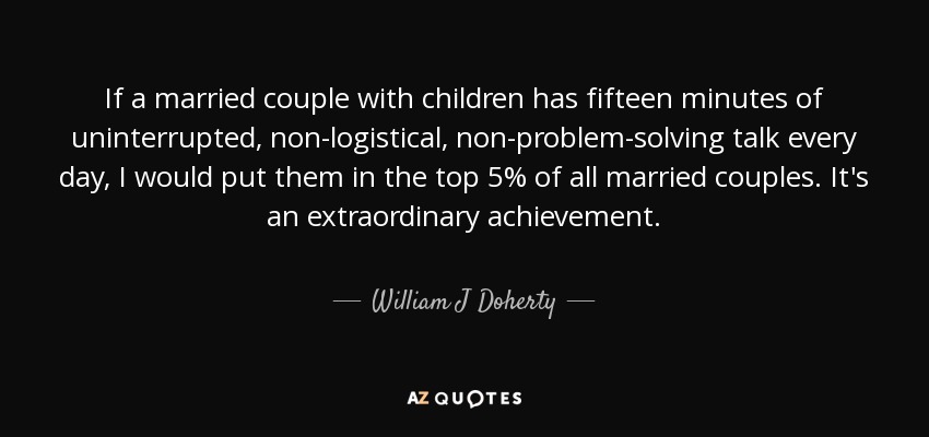 If a married couple with children has fifteen minutes of uninterrupted, non-logistical, non-problem-solving talk every day, I would put them in the top 5% of all married couples. It's an extraordinary achievement.