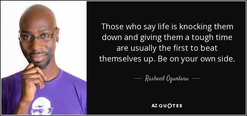 Those who say life is knocking them down and giving them a tough time are usually the first to beat themselves up. Be on your own side.