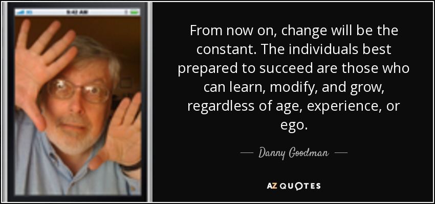From now on, change will be the constant. The individuals best prepared to succeed are those who can learn, modify, and grow, regardless of age, experience, or ego.