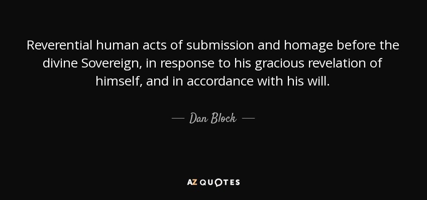 Reverential human acts of submission and homage before the divine Sovereign, in response to his gracious revelation of himself, and in accordance with his will.