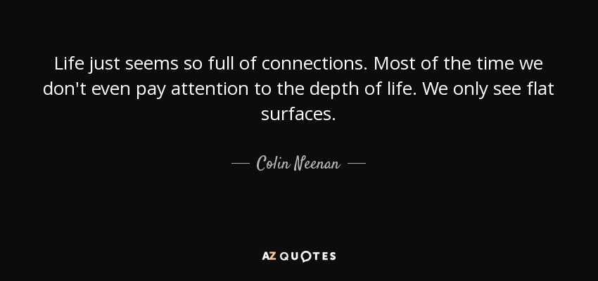 Life just seems so full of connections. Most of the time we don't even pay attention to the depth of life. We only see flat surfaces.
