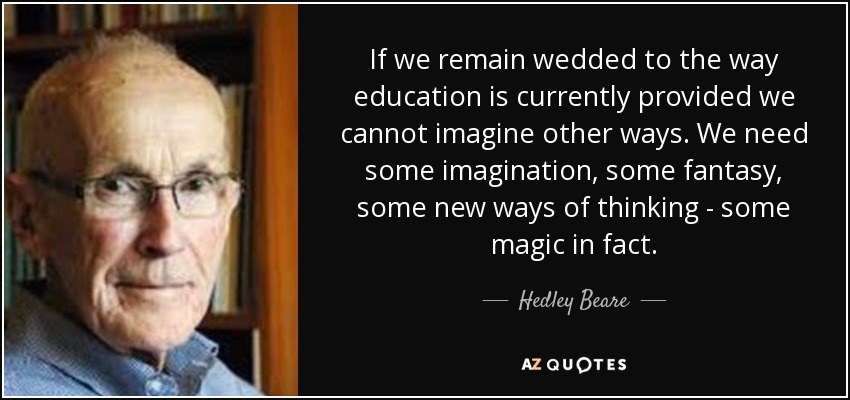 If we remain wedded to the way education is currently provided we cannot imagine other ways. We need some imagination, some fantasy, some new ways of thinking - some magic in fact.