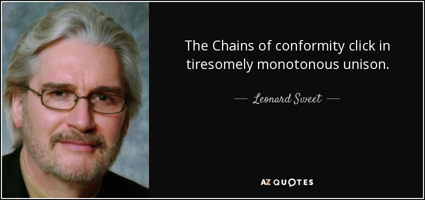 The Chains of conformity click in tiresomely monotonous unison.