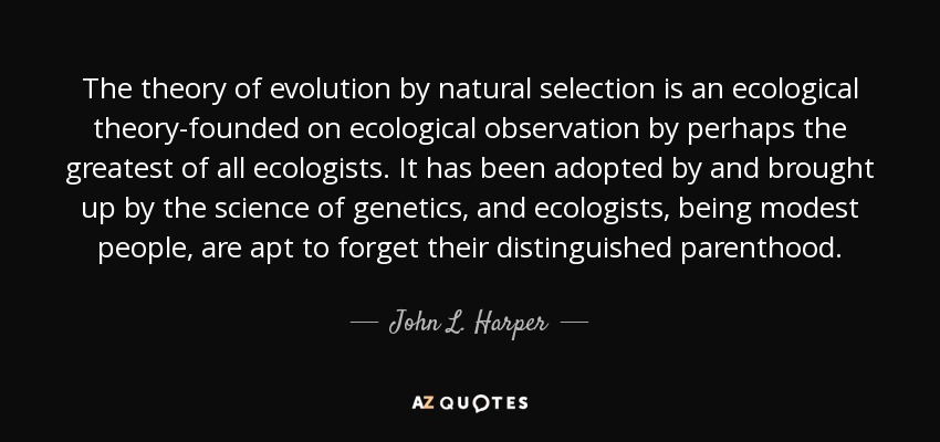 The theory of evolution by natural selection is an ecological theory-founded on ecological observation by perhaps the greatest of all ecologists. It has been adopted by and brought up by the science of genetics, and ecologists, being modest people, are apt to forget their distinguished parenthood.