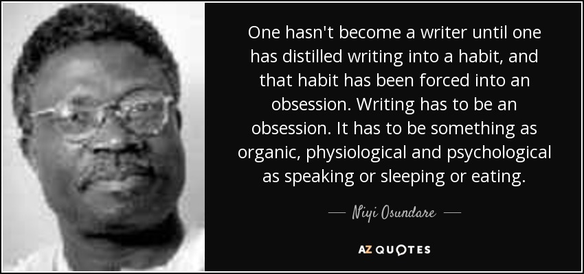 One hasn't become a writer until one has distilled writing into a habit, and that habit has been forced into an obsession. Writing has to be an obsession. It has to be something as organic, physiological and psychological as speaking or sleeping or eating.