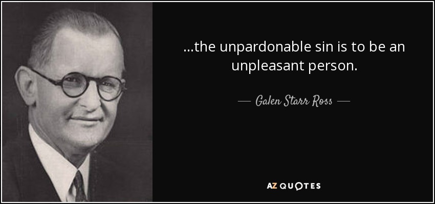 The real secret of happiness is simply this: to be willing to live and let live, and to know very clearly in one's own mind that the unpardonable sin is to be an unpleasant person.