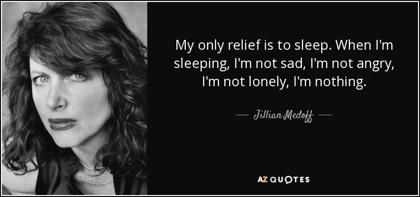 My only relief is to sleep. When I'm sleeping, I'm not sad, I'm not angry, I'm not lonely, I'm nothing.