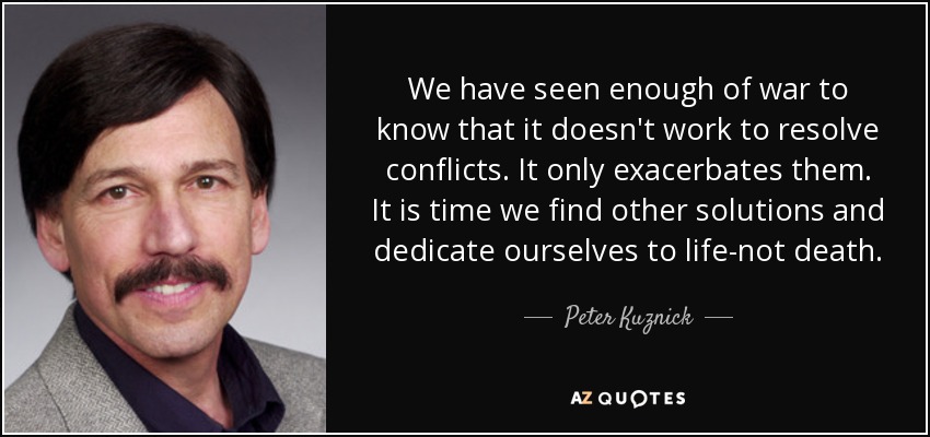 We have seen enough of war to know that it doesn't work to resolve conflicts. It only exacerbates them. It is time we find other solutions and dedicate ourselves to life-not death.