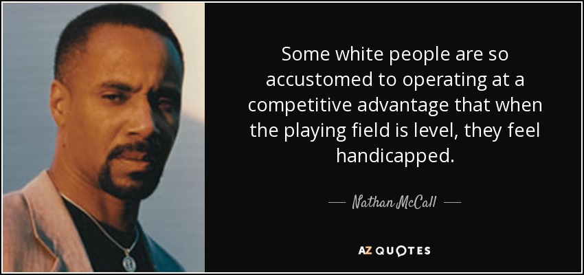 Some white people are so accustomed to operating at a competitive advantage that when the playing field is level, they feel handicapped.