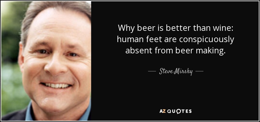 Why beer is better than wine: human feet are conspicuously absent from beer making.