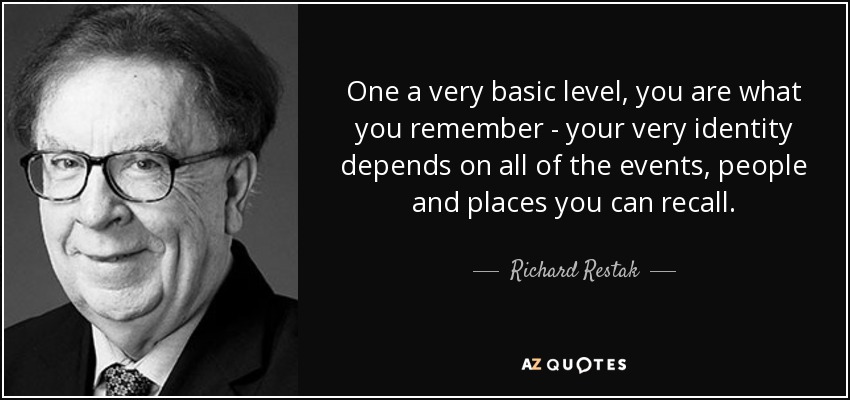 One a very basic level, you are what you remember - your very identity depends on all of the events, people and places you can recall.
