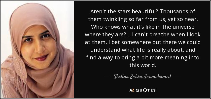 Aren't the stars beautiful? Thousands of them twinkling so far from us, yet so near. Who knows what it's like in the universe where they are? ... I can't breathe when I look at them. I bet somewhere out there we could understand what life is really about, and find a way to bring a bit more meaning into this world.