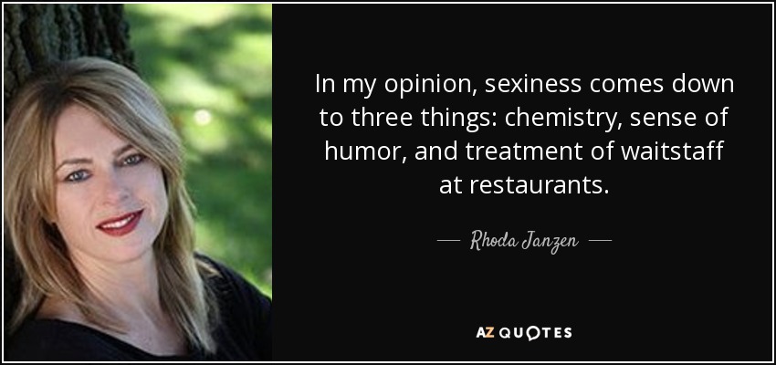 In my opinion, sexiness comes down to three things: chemistry, sense of humor, and treatment of waitstaff at restaurants.