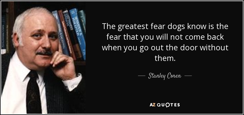 The greatest fear dogs know is the fear that you will not come back when you go out the door without them.