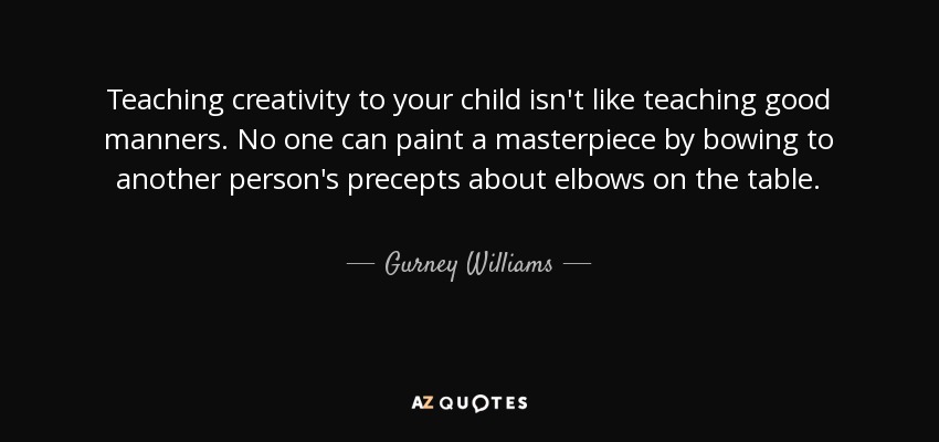 Teaching creativity to your child isn't like teaching good manners. No one can paint a masterpiece by bowing to another person's precepts about elbows on the table.