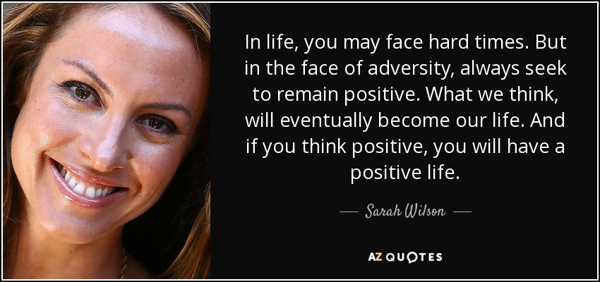 In life, you may face hard times. But in the face of adversity, always seek to remain positive. What we think, will eventually become our life. And if you think positive, you will have a positive life.
