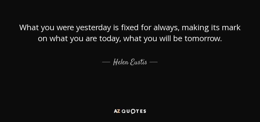 What you were yesterday is fixed for always, making its mark on what you are today, what you will be tomorrow.