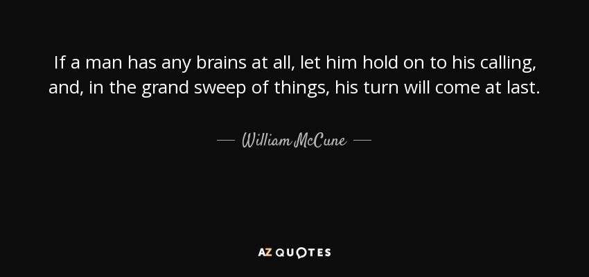 If a man has any brains at all, let him hold on to his calling, and, in the grand sweep of things, his turn will come at last.
