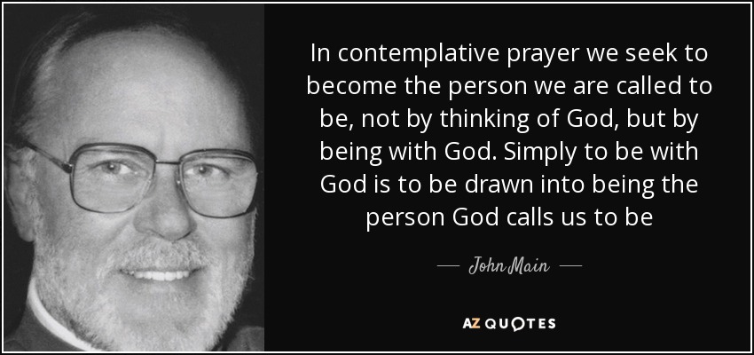 In contemplative prayer we seek to become the person we are called to be, not by thinking of God, but by being with God. Simply to be with God is to be drawn into being the person God calls us to be