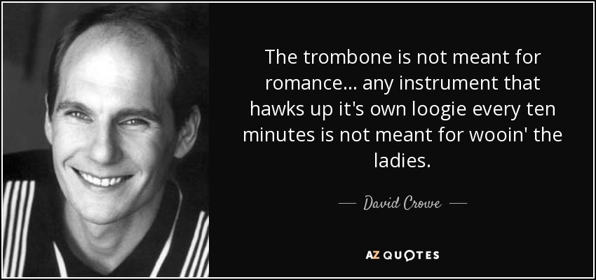 The trombone is not meant for romance... any instrument that hawks up it's own loogie every ten minutes is not meant for wooin' the ladies.