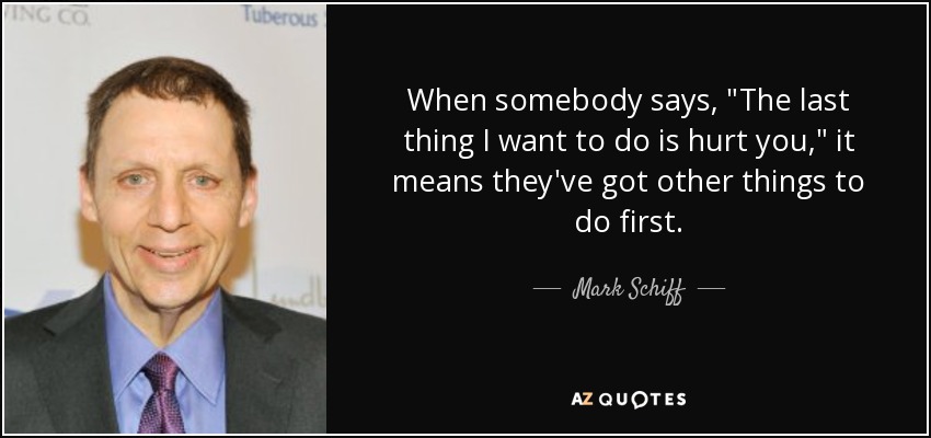 When somebody says, "The last thing I want to do is hurt you," it means they've got other things to do first.