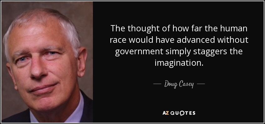 The thought of how far the human race would have advanced without government simply staggers the imagination.