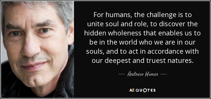 For humans, the challenge is to unite soul and role, to discover the hidden wholeness that enables us to be in the world who we are in our souls, and to act in accordance with our deepest and truest natures.