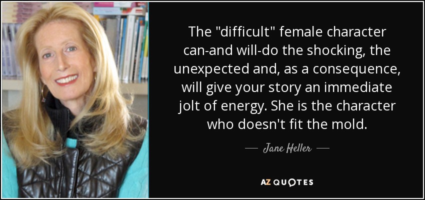 The "difficult" female character can-and will-do the shocking, the unexpected and, as a consequence, will give your story an immediate jolt of energy. She is the character who doesn't fit the mold.