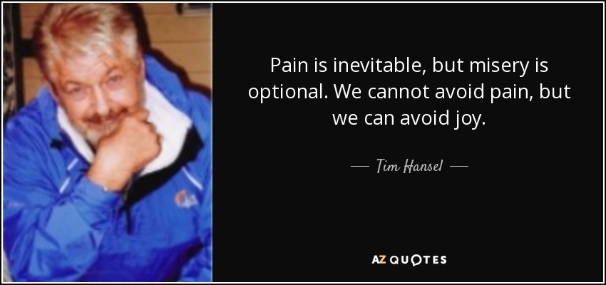 Pain is inevitable, but misery is optional. We cannot avoid pain, but we can avoid joy.