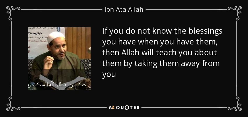 If you do not know the blessings you have when you have them, then Allah will teach you about them by taking them away from you