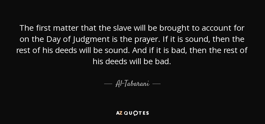 The first matter that the slave will be brought to account for on the Day of Judgment is the prayer. If it is sound, then the rest of his deeds will be sound. And if it is bad, then the rest of his deeds will be bad.