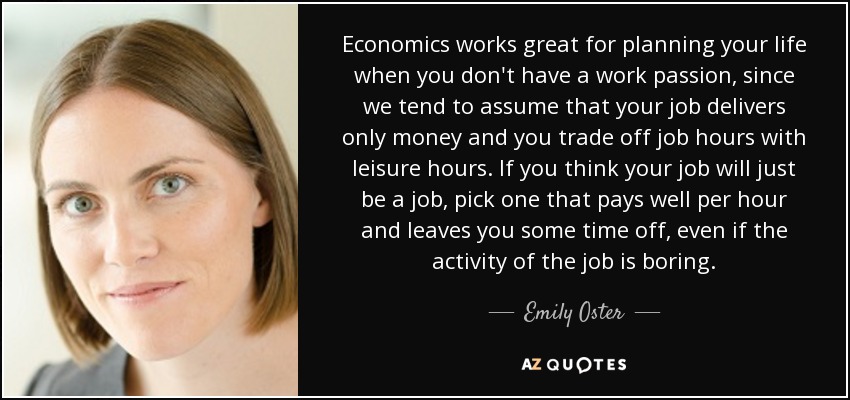 Economics works great for planning your life when you don't have a work passion, since we tend to assume that your job delivers only money and you trade off job hours with leisure hours. If you think your job will just be a job, pick one that pays well per hour and leaves you some time off, even if the activity of the job is boring.