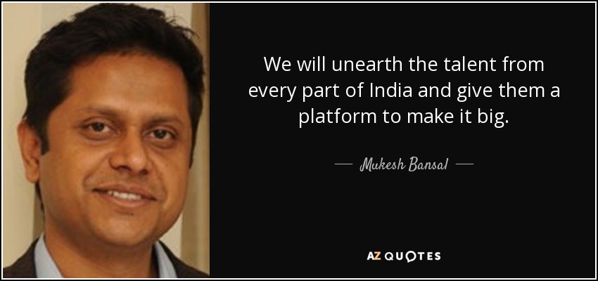 We will unearth the talent from every part of India and give them a platform to make it big.