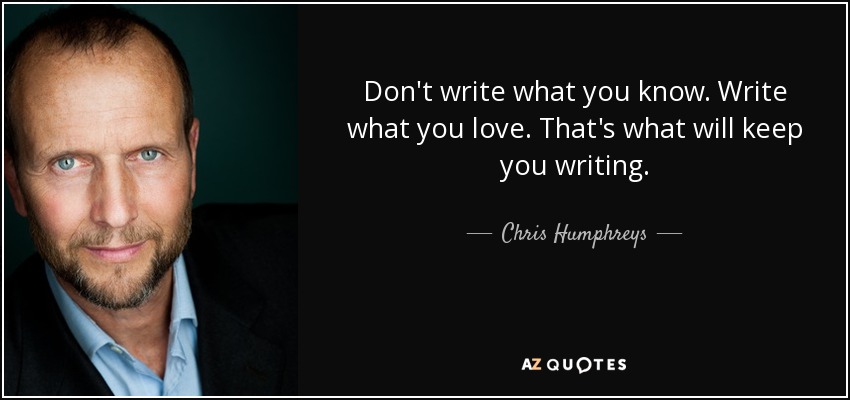 Don't write what you know. Write what you love. That's what will keep you writing.