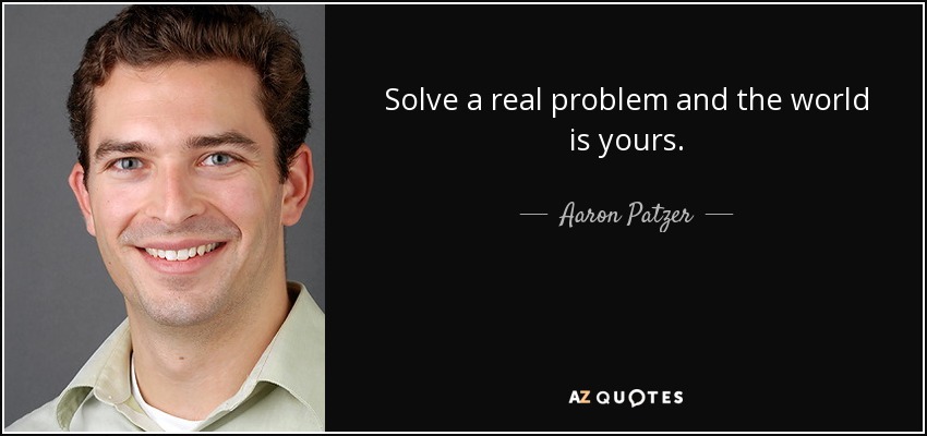 Solve a real problem. You don't start a company because you want to be an entrepreneur or the fame and glory that comes along with it. You become an entrepreneur to solve a real problem.